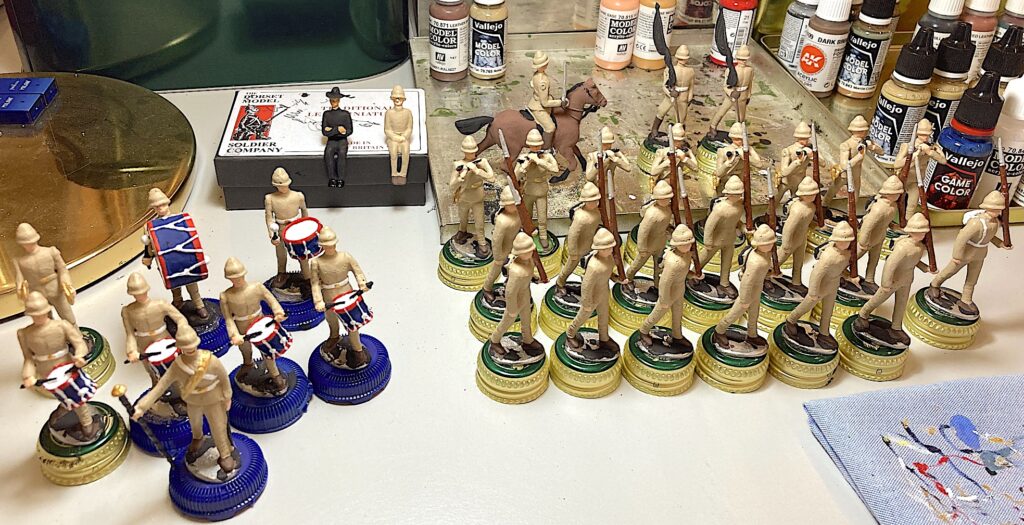 Still working on the fictional Royal North Surrey of “THE FOUR FEATHERS” fame! Dorset Toy Soldiers casts by Antony Spencer in 54MM… in the very early stages… primed in black… etcSlowly getting there…