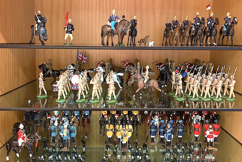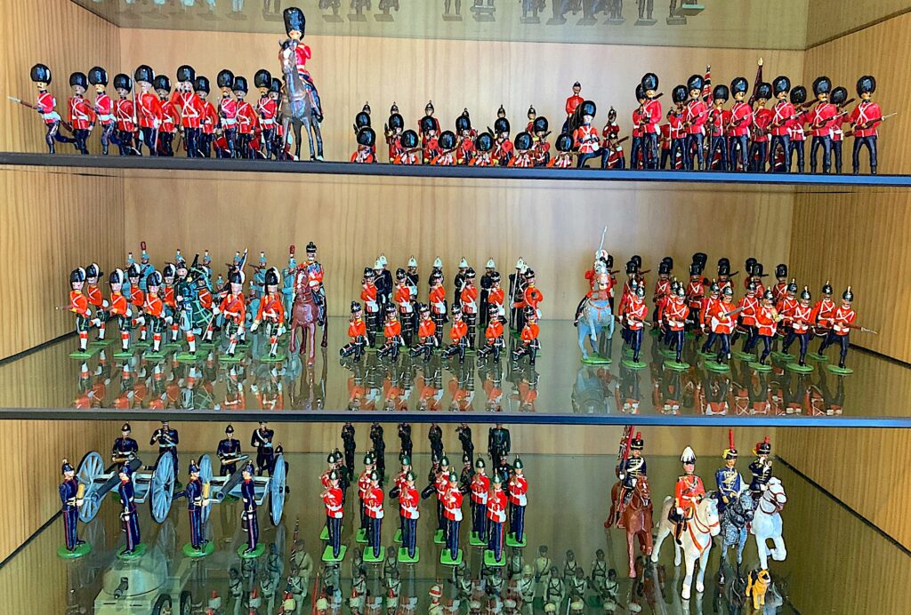 One is in my house in Pal (1600 mts above the sea level I guess) mainly marching figures and Bands. My DUCAL (Fort Ducal) collections are there… Trooping the Colour was my first collecting theme… completed with other ceremonial Toy Soldiers; Royal Canadian Mounted Police; Some other units as “my” Royal West Kent, two sets of Mountain Guns and very old “memories” (including mugs and model cars and what not).
