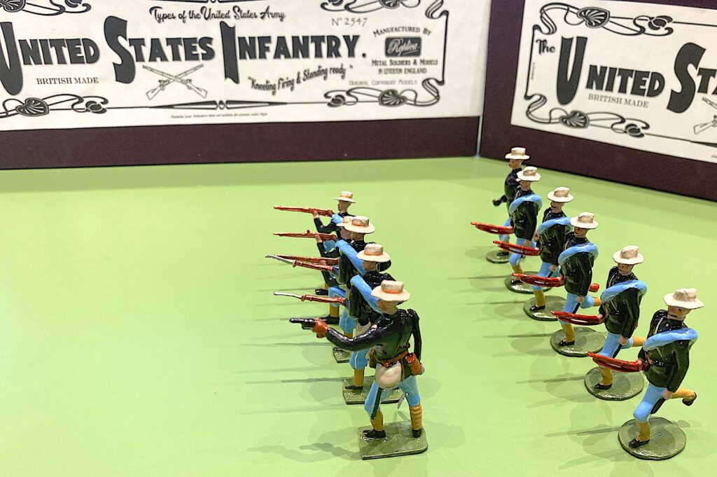 A unit of French Cuirassiers (Napoleon III) by REPLICA… and I will do not retouch the original painting job by Andrew.Using a flash…USMC detailUSA InfantryAnother pic (boxes of 6 figures)An special set (number 1 if you must know) done as a gift by Andrew Stevenson from REPLICA… a surprise and a nonplussed collector I must add!