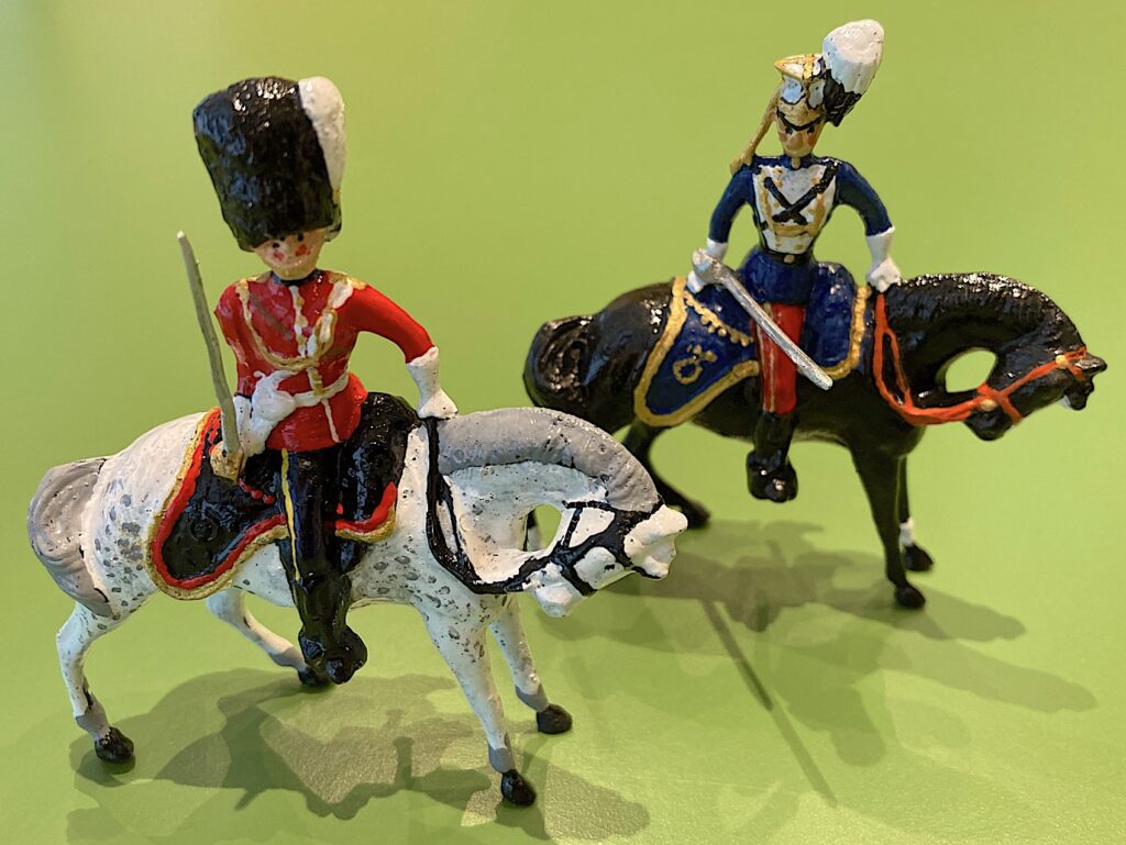 Here in this post you can look at my 9 mounted officers based on Britains Officer of Lancers… changes of arms and heads etc have added “custom toy soldiers”… but they all come from that old BRITAINS masterpiece.