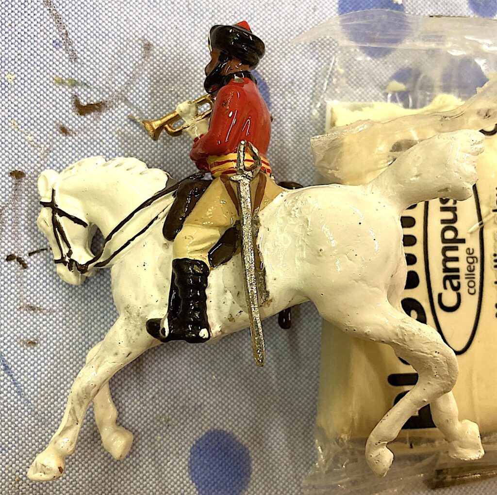 I am now proceeding to adjust my collections and do things that were on standby for a quite a time… using replacement pieces (arms, heads, etc) and even disassembling W.Britains damaged horses (one I did broke myself and the other horse come without a tail…)… just a bit of harmless entertainment to polish the end of it.