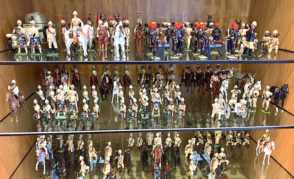 One is in my house in Pal (1600 mts above the sea level I guess) mainly marching figures and Bands. My DUCAL (Fort Ducal) collections are there… Trooping the Colour was my first collecting theme… completed with other ceremonial Toy Soldiers; Royal Canadian Mounted Police; Some other units as “my” Royal West Kent, two sets of Mountain Guns and very old “memories” (including mugs and model cars and what not).